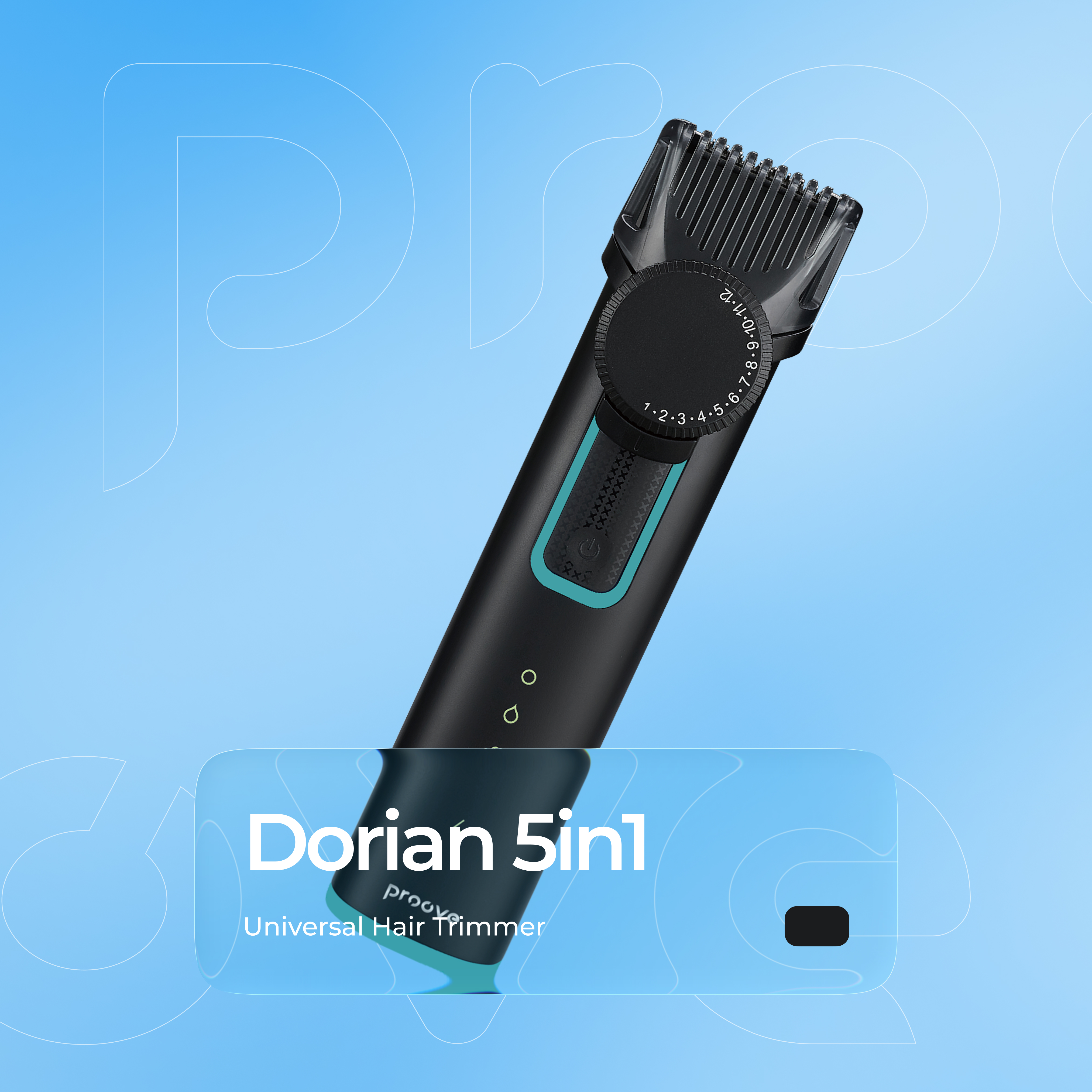 The Proove Dorian multifunctional hair trimmer is equipped with self-sharpening blades that ensure a long lifespan and always provide precise cutting results. The blades maintain their sharpness even after extended use, ensuring effective and safe hair trimming.