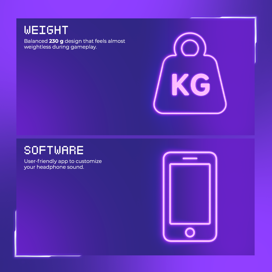 The Bliss headphones offer an exceptional symbiosis of quality sound and stable connectivity. Thanks to Bluetooth 5.4 version and powerful drivers, the headphones deliver excellent frequency response during playback. Great bass, high detail, and vivid music coloration will reveal the accessory's gaming qualities in a new way.
