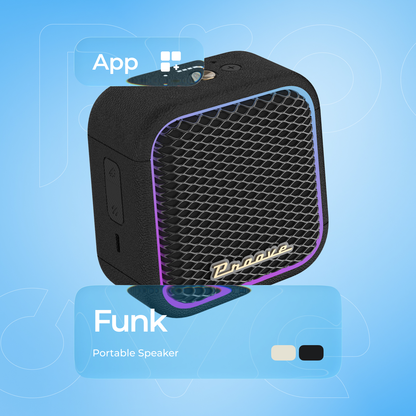 Proove Funk 15W portable speaker features a compact and modern design, making it convenient for everyday use. The durable body ensures wear resistance, and the lightweight design makes it easy to take the speaker with you on trips, walks, or workouts. The well-thought-out button layout makes control intuitive and enjoyable.