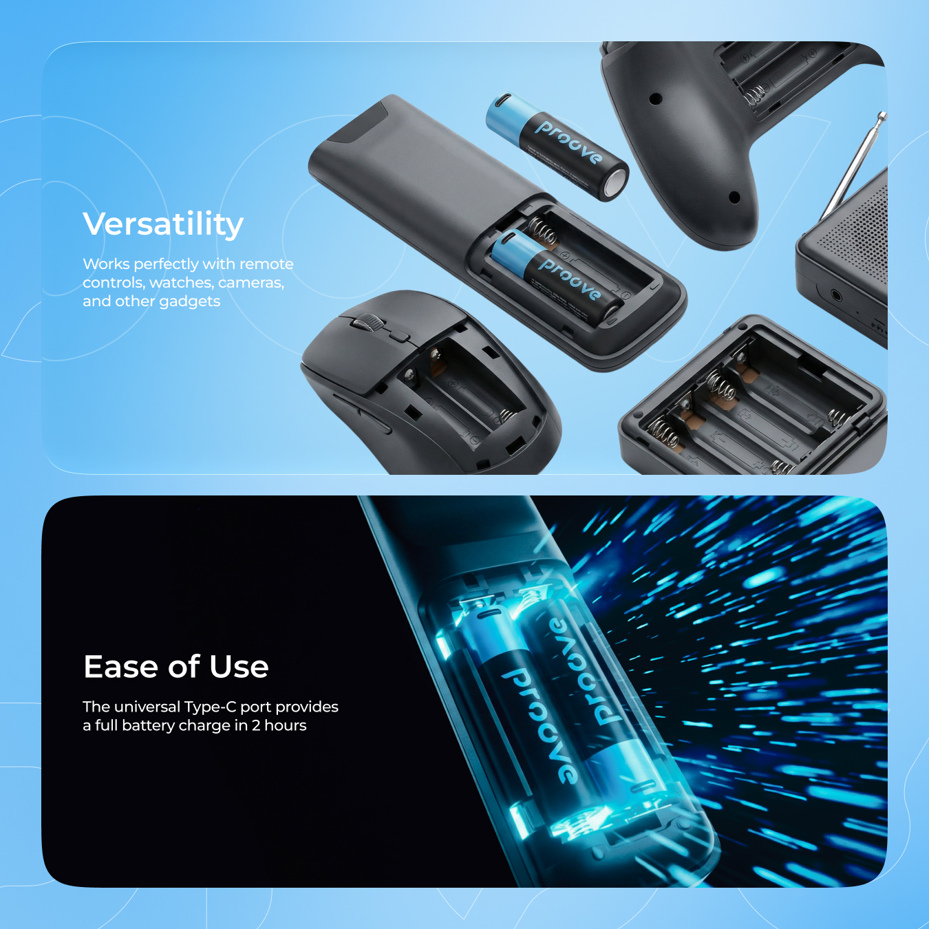 Akumulatory Compact Energy AA są wysoce niezawodne i trwałe. Technologia litowo-jonowa zapewnia pojemność 2400 mWh, gwarantując długotrwałą niezawodność. Co najważniejsze, każdy akumulator ma 1200 cykli ładowania. Po 1.5-2 godzinach ładowania są gotowe do ponownego użycia!