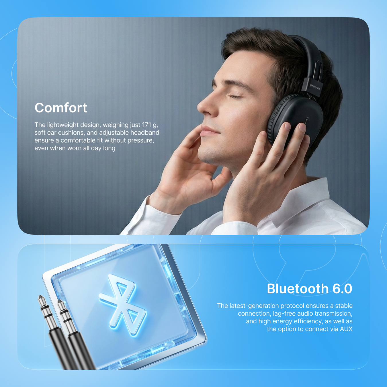 Proove Symphony Neo headphones deliver clean, well-balanced sound without hum, harsh highs, or overpowering bass. The 40 mm drivers perfectly convey vocals, instruments, and fine details, while the wide frequency range of 20-20,000 Hz preserves the natural character of the tracks. These headphones are well suited for music, videos, and podcasts.