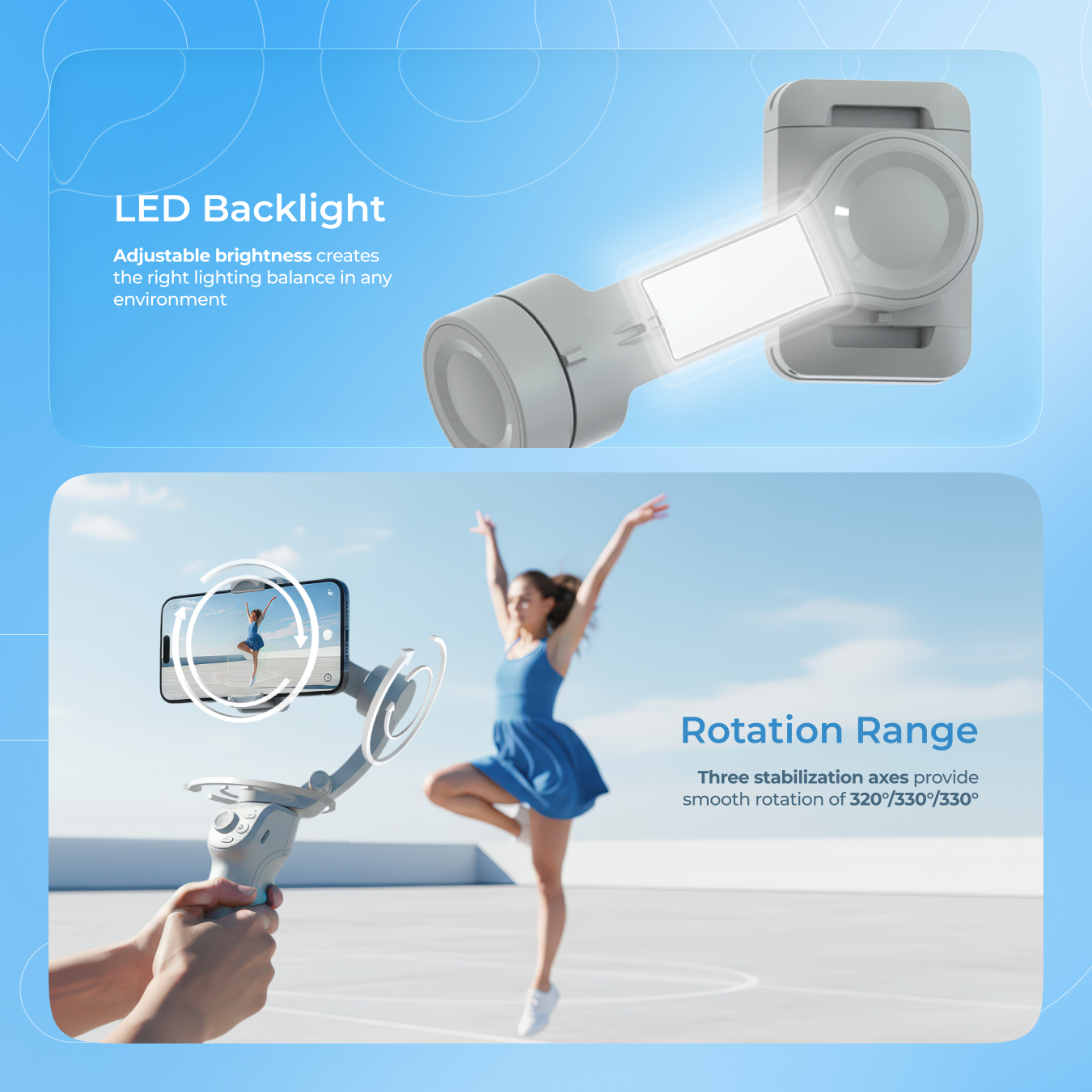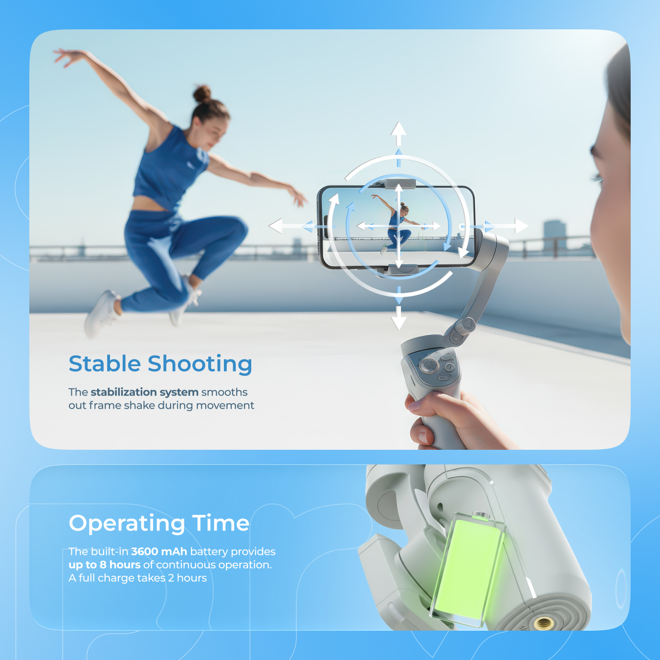 The Proove Axis stabilizer incorporates the latest technology to deliver smooth, shake-free video. Its built-in LED light and long runtime of up to 8 hours make it a must-have for nighttime shoots and events where every detail counts.