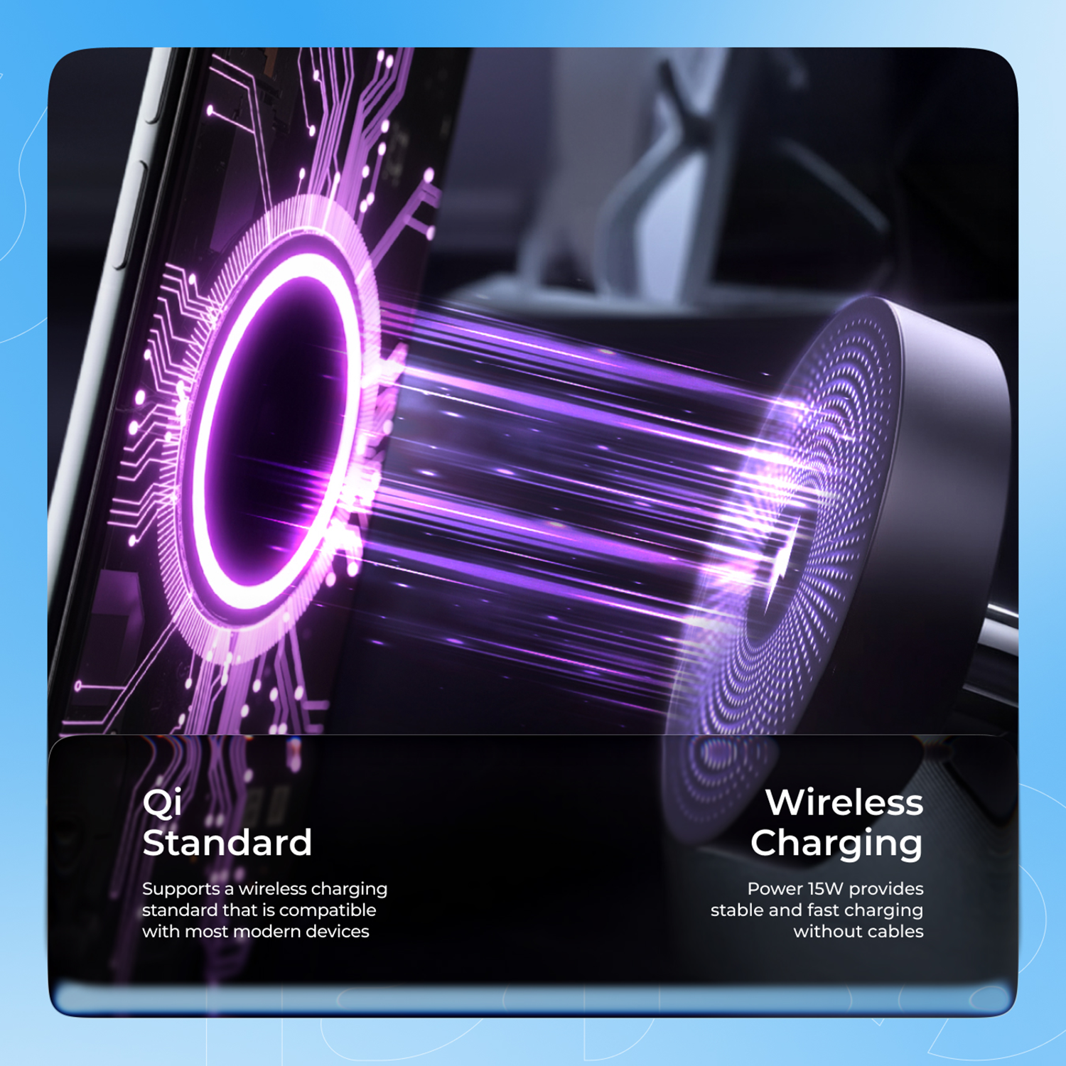Magnetic Field is made of plastic and aluminum, creating a minimalist and modern look. The input current strength is 5V/3A, 9V/2A, and each output has its own power: watch: 3W, headphones: 3W, smartphone: 15W.