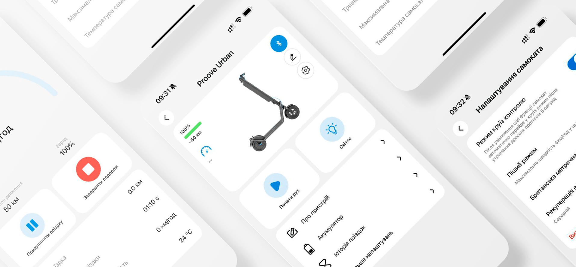 Контролюйте заряд, швидкість і відстань. Перемикайте режими, активуйте світло і переглядайте історію поїздок.