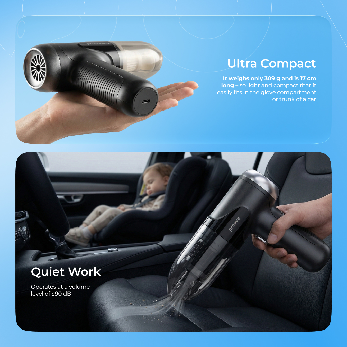 Пилосос має потужність 70W із силою всмоктування до 5Kpa, що дозволяє ефективно справлятися з пилом, крихтами, піском та дрібним сміттям в салоні авто. Підходить для щоденного прибирання легких та середніх забруднень.